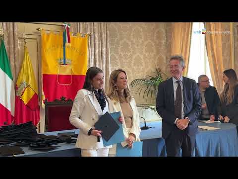 Il sindaco Manfredi e l'assessora Marciani accolgono in Comune gli studenti neodiplomati dell'iniziativa Napoli CENTOELODE: per loro una borsa di studio del valore di 120 euro.
